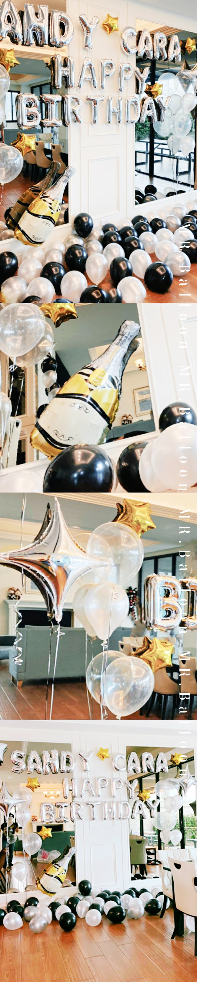 1. 14吋 happy Birthday錫箔氣球/x13顆(充空氣) 2. 39吋金色香檳錫箔氣球/x1顆(充空氣) 3. 10吋乳膠地板氣球/x20顆(充空氣) 4. 10吋金色星形錫伯氣球/x6顆(充空氣) 5. 26吋銀色星形錫伯氣球/x2顆(充氦氣)