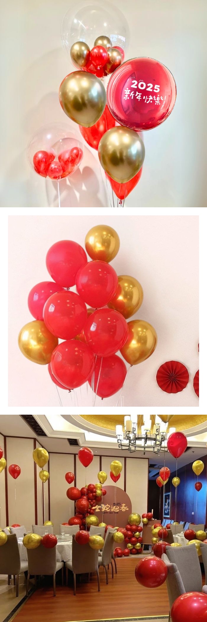 - 10吋珍珠大紅x15顆,10吋金屬金x15顆 12吋透明亮片(金色)x10顆