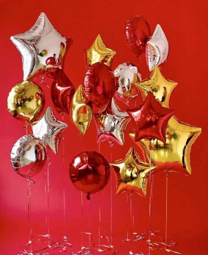 - 18吋金色/銀色/紅色錫箔星x各3顆,18吋金色/銀色錫箔圓x各3顆 / 共15顆