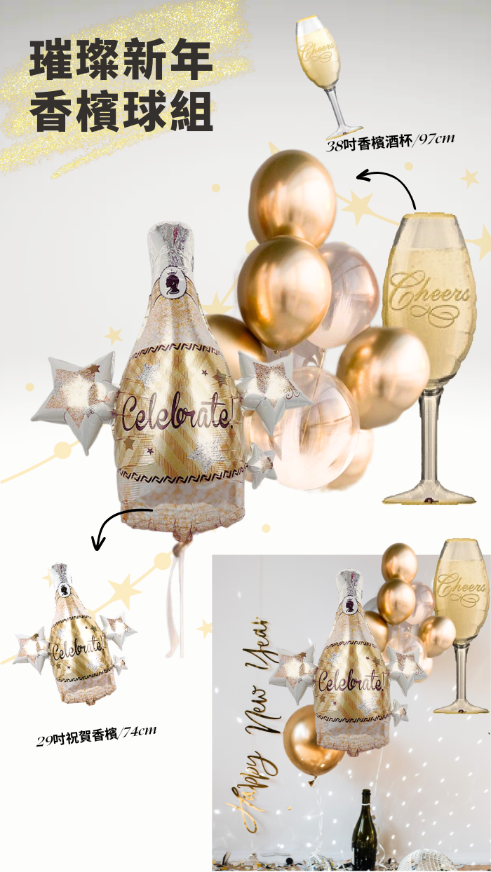 1. 29吋祝賀香檳錫箔球74cm /1顆(充氦氣)