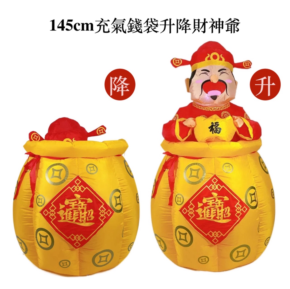 1. 145cm充氣錢袋升降財神爺