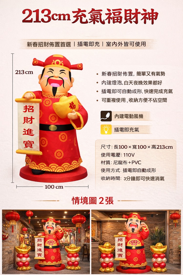 商 品 名 稱:213cm充氣財神爺