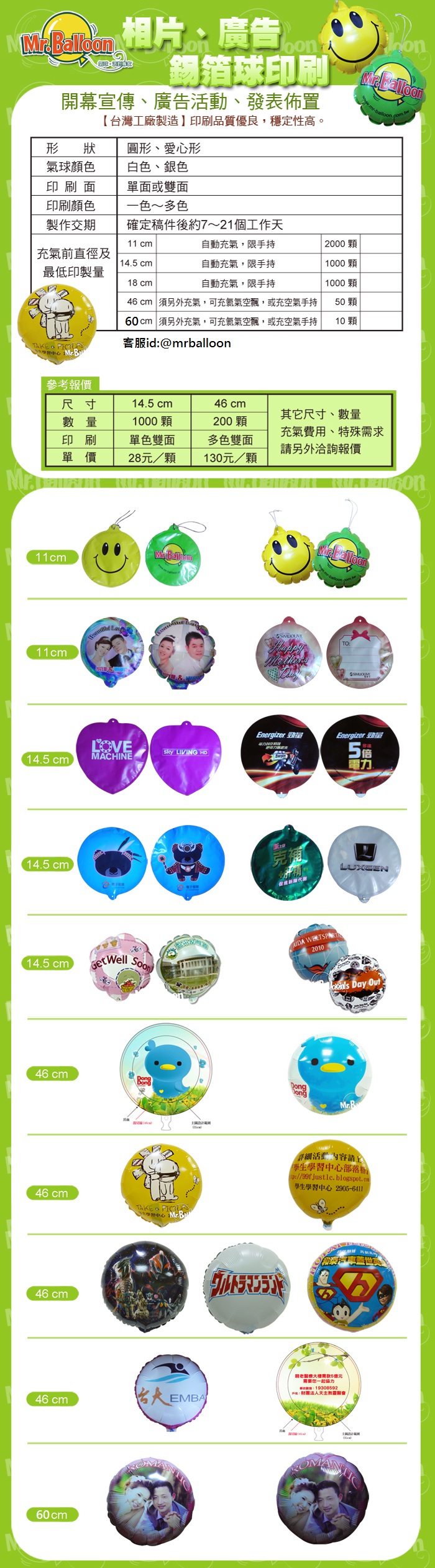 ⇥ 錫箔空飄球室內漂浮時間約5-7天