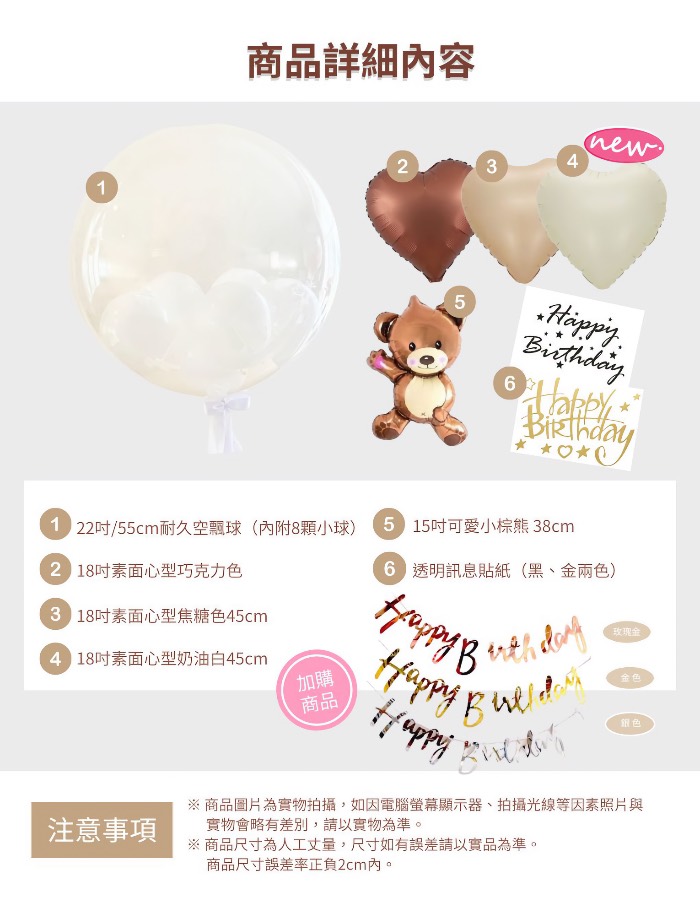 *氣球配重、氣球專用袋、生日字串可於下方加購並於『備註欄備註顏色』即可)