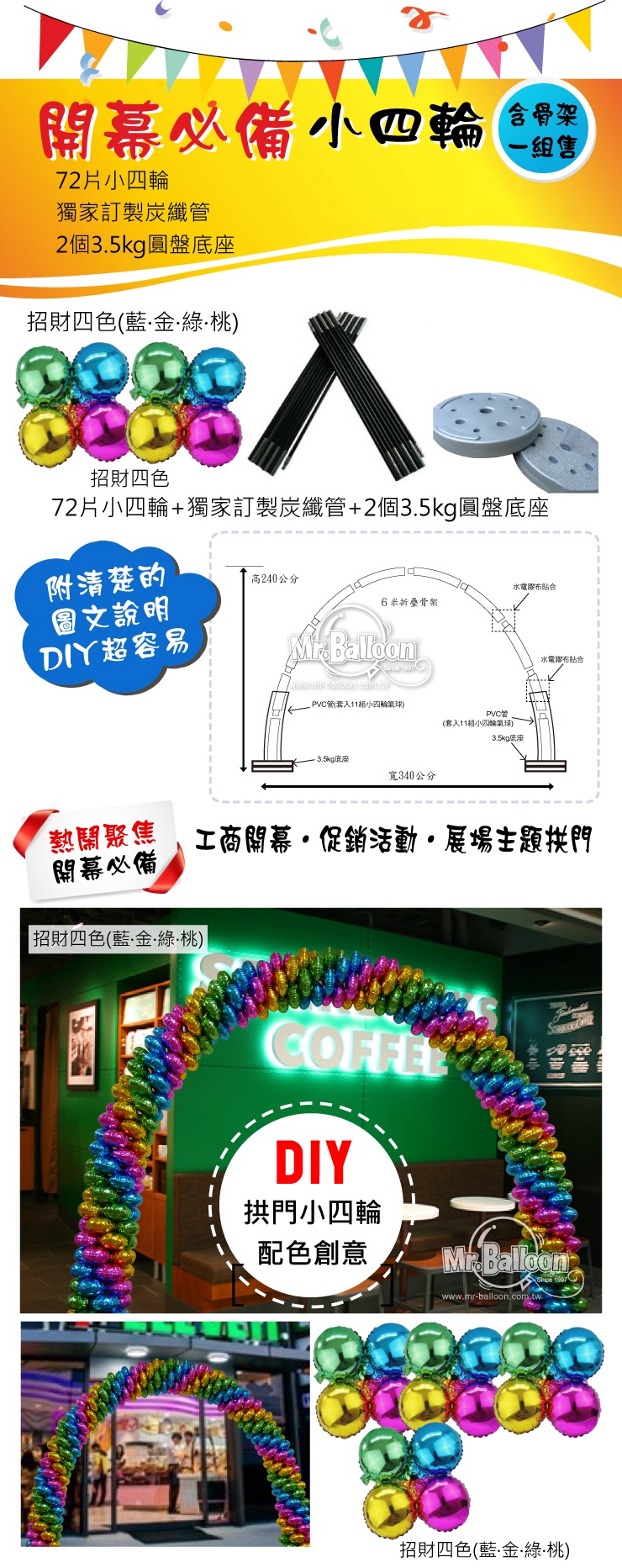 . 素色氣球 大四輪 小四輪 拱門 氣球羅馬柱