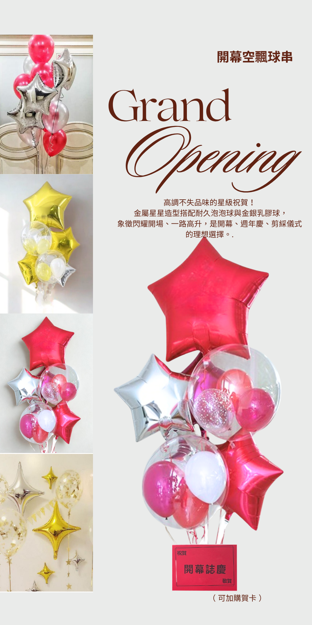 1. 18吋星星錫箔氣球/4顆 (充氦氣) 2. 44cm吋耐久球空飄球中球/ 2顆 (內含3顆小球)
