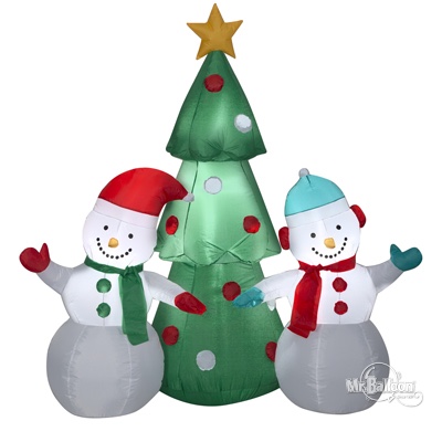 雪人夫婦與聖誕樹組合|親子派對庭院造型
